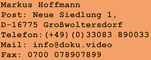 Das Copyright der auf dieser Seite verwendeten Inhalte bleibt allein bei dem für diese Internetseite verantwortlichem. Eine Vervielfältigung oder Verwendung von Grafiken, Fotos, Videosequenzen oder Texte in anderen elektronischen oder gedruckten Publikationen ist ohne ausdrückliche Zustimmung nicht gestattet.